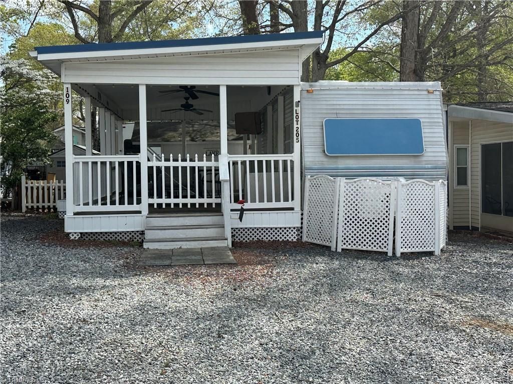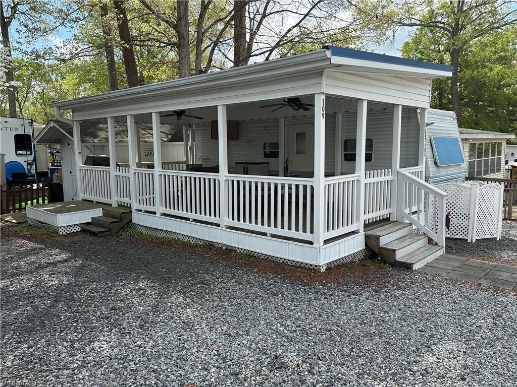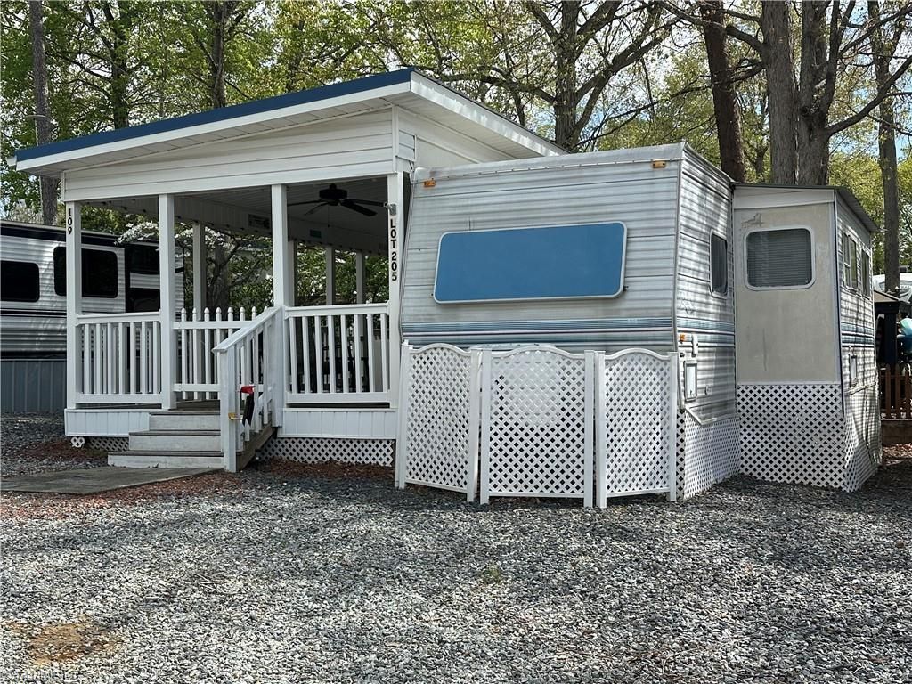 Escape to Badin Shores Resort with this one-bedroom camper situated on a flat, deeded lot in a gated waterfront community. Enjoy relaxing on the covered porch or take advantage of the resort-style amenities just steps awayâ??including the pool, basketball courts, putt putt, fishing pond, and more. The level lot provides ample parking for vehicles, golf carts, and even a boat. A spacious storage building is perfect for your lake toys and gear. Inside, you'll find updated LVP flooring and a cozy layout ideal for weekend getaways or extended stays. Whether you're looking for a peaceful retreat or an active lake lifestyle, this property offers it all.