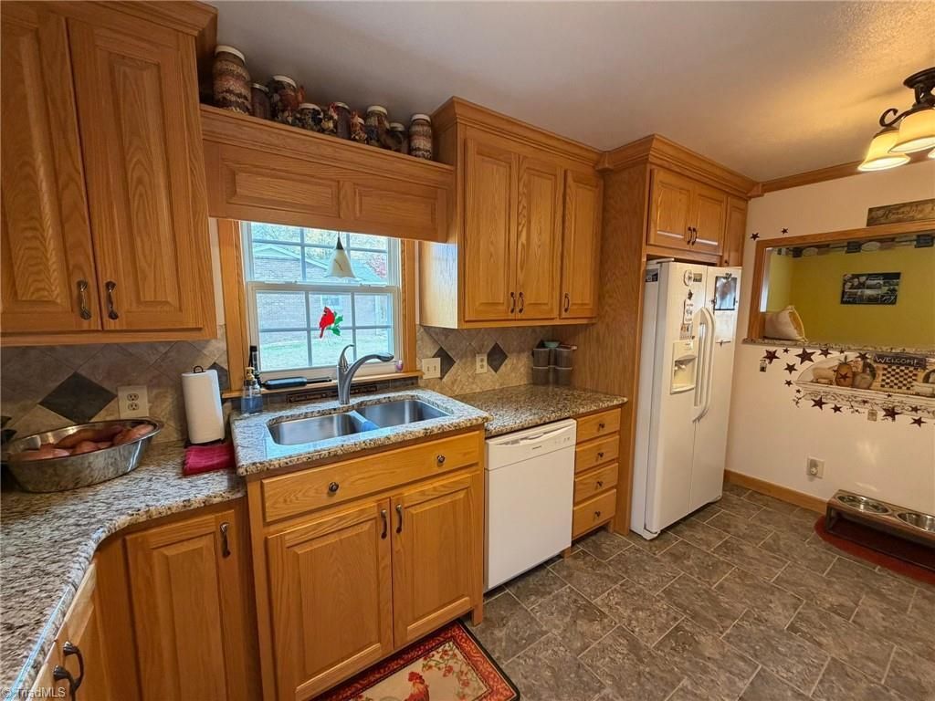 Immaculately Maintained Over 1500 Sqft, 3 Bedroom, 2 Full Bathroom Home on Almost an Acre with Huge Fenced-inYard in King! .80 Acres, Fenced Yard, Basement Garage, No HOA, Stick Built Home, Kitchen Has Been CompletelyUpgraded Kitchen, Updated Cabinets, Custom, Soft-Close Cabinets & Dovetail Drawers, Granite Countertops & TileFloor, Nice Pantry Style Cabinet Gives Tons of Storage,Window into the Living Room Gives a Nice Open Feel! FinishedDen in Basement, 1 Car Basement Garage, Raised Beds for All Your Gardening. Storage Building, New HVAC in 2021,New Water Heater in 2020, Waterproofed Basement & Comes with 20 Year Warranty, All Appliances Stay, Home Is inUSDA 100% Financing Eligible Area-Ask Your Lender About This Awesome Loan Program! Hiking at Pilot MountainState Park, Hanging Rock State Park or Kayaking on the Dan River for Yadkin River. King is A Wonderful FlourishingCommunity that is Within a few Hours Drive to The Beach or Blue Ridge Mountains.