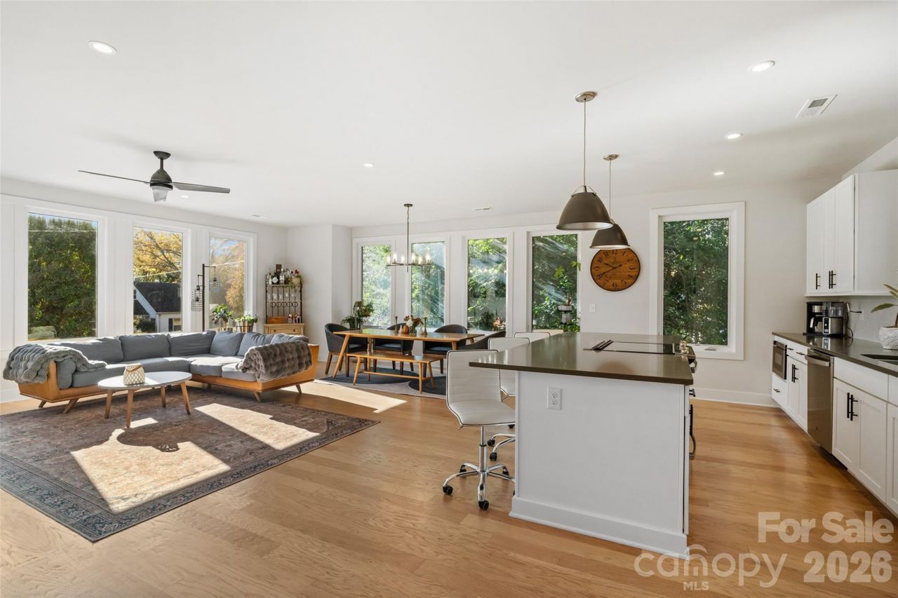 Rare end-unit opportunity to join this charming four-home community, just minutes from Uptown Charlotte. Enjoy close proximity to Plaza Midwood, Central Avenue, and all the shops, restaurants, and vibrant lifestyle the area has to offer! This premium end unit features expansive windows that flood the open, highly functional floor plan with natural light ? perfect for everyday living and effortless entertaining. The well-appointed kitchen boasts custom cabinetry, a large center island, quartz countertops, a stylish tile backsplash, and high-end stainless steel appliances. Wide-plank, site-finished hardwood floors flow throughout the ground level, main level, staircase, and upstairs hallway, adding warmth and continuity to the home.The primary suite features a spacious walk-in closet and a luxurious bathroom with a walk-in shower and dual vanities. Enjoy the outdoors from the private rear deck on the main level or the covered patio on the ground floor. Fresh pine needles and fence make this perfect everyone! Parking is a breeze with a two-car garage and an additional driveway for guests. Walk to Eastway Crossing whick features Portofinos, Barts Mart, Dairy Queen, and more! Also there is our very own neighborhood bar at the end of Pinecrest called Franks Beer Shop! Come see for yourself everything this exceptional townhouse has to offer!