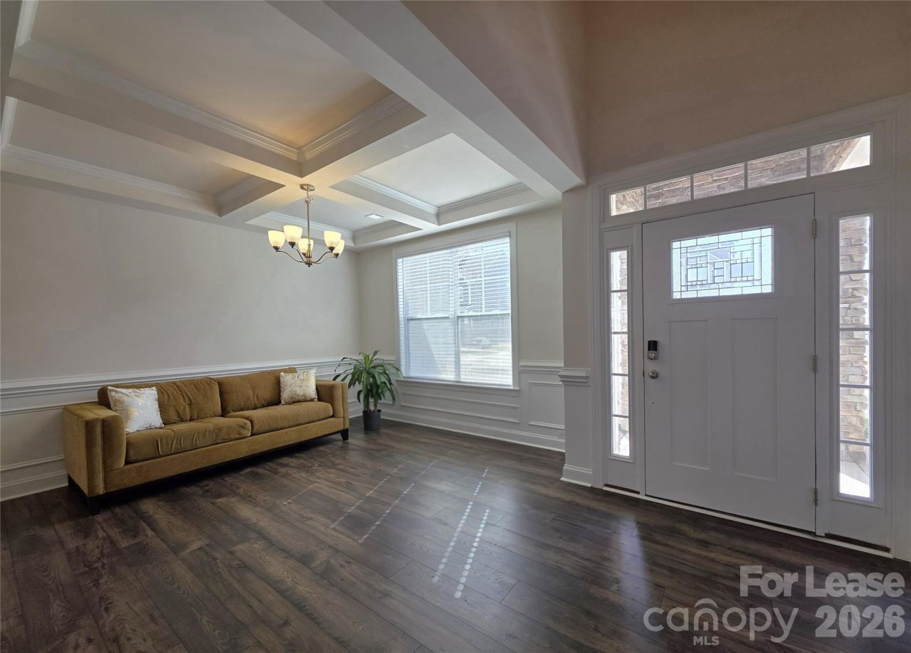 Come see this 2023 constructed, gorgeous 5 bedroom, 4 bathroom home in a wonderful HOA community in Huntersville. This home offers tons of extras with a large bonus room/loft area that can be used as an office, playroom or second living area and a covered rear patio to enjoy the spacious backyard which is perfect for entertaining.Upon entering you'll immediately be greeted with the front sitting room complete with elegant coffered ceilings and a formal front office with french doors. As you continue through the main floor you'll enter the large living room which flows into the gourmet kitchen with quartz countertops, a double wall oven, gas range, a kitchen island and large pantry. There is also a full bedroom and bathroom and laundry room on the main level. Upstairs you'll find the spacious primary suite with a large walk in closet and separate garden tub and shower. There are 3 other bedrooms and 2 other bathrooms on the second level all having granite countertops and tiled floors. Each room features a wonderful view of the surrounding neighborhood. The property also has a two-car garage that contains the tankless water heater. This home has it all! (All tenant furniture and the washer/dryer will be removed and will not be staying at the property).A 30 day move in window will be required for the upcoming tenants to allow for current tenants to vacate.This home is still occupied and will only be shown through agent showings only. If you do not have your own agent please contact management company to request a weekday showing between 10am-4pm.