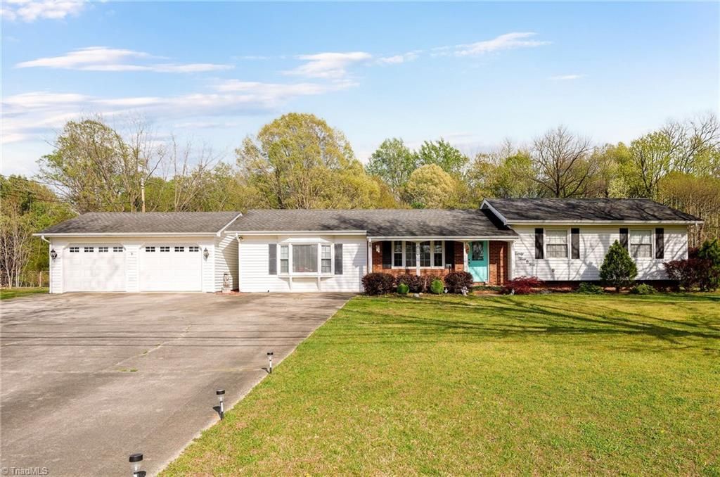 Welcome to this stunning single-level home perfectly situated on a private, fenced in one-acre lot. From the moment you step through the front door, youâ??re greeted by an open-concept kitchen and dining area that flows effortlessly into two spacious living rooms offering plenty of natural light. If you love the outdoors, this home is a dream come true. Relax on the covered back porch under the breeze of ceiling fans or entertain on the connected patio and deckâ??both of which overlook your private, saltwater pool. For those needing extra space, the property includes four storage sheds to keep everything organized. Located in a prime spot between Winston-Salem and Greensboro, youâ??ll enjoy quick access to the best shopping and dining both cities have to offer while maintaining your own peaceful sanctuary. Come see this beauty for yourself!