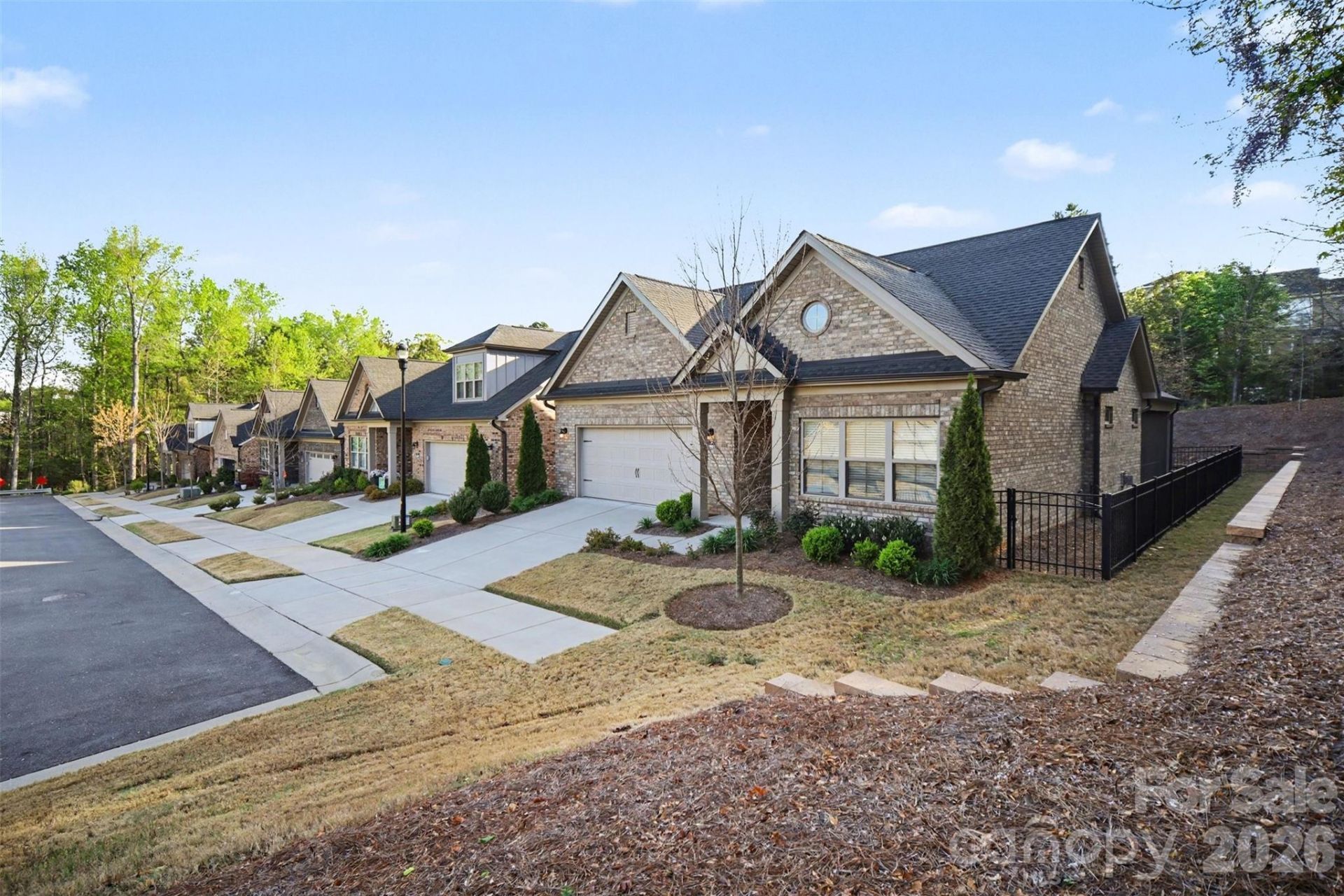 Stunning full-brick home with a private, tree-lined backyard and a spacious screened-in porch?an ideal spot to relax and enjoy the peaceful, quiet setting or entertain family and friends. The chef's kitchen features stainless steel appliances, granite countertops, a large island, and a gas cooktop, making it perfect for both everyday living and gatherings.Elegant coffered ceilings add character and style throughout the kitchen, dining area, family room, and primary suite. Designed for comfort and convenience, all living spaces?including the office, laundry room, and flex/storage areas?are thoughtfully located on one level. The open-concept layout seamlessly connects the kitchen, dining, and living areas, creating a bright and welcoming space.Recent upgrades include LVP flooring throughout, fresh interior paint, custom shelving and updated closets in the primary suite, a new tiled fireplace hearth, added laundry room cabinetry, a new bathtub, and double doors to the office. Refrigerator and garbage disposal replaced in 2025.Conveniently located near shopping, restaurants, medical facilities, and I-77, this beautifully maintained home is located in a desirable 55+ age-restricted gated community and offers the perfect blend of comfort, style, and low-maintenance living.
