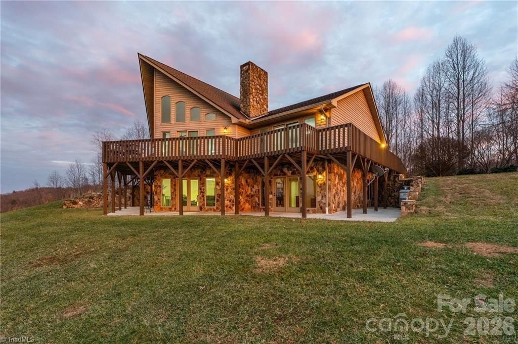 An unbelievably rare find near Kerr Scott Lake, this property offers breathtaking acreage and exceptional versatility. Set behind a gated entrance on 43 stunning acres, this 4BR/3.5BA home is designed to capture the beauty of its surroundings. The Great Room features a dramatic wall of windows with sweeping views, while the well-appointed kitchen is ideal for everyday living and entertaining. Two primary en-suites provide flexibility for guests or multi-generational living, with two additional bedrooms located on the walk-out basement level. All bedrooms enjoy scenic views. The expansive parcel includes two additional building sites, plus a bonus 2BR updated mobile home?perfect for guests, rental income, or extended family. Just minutes from Kerr Scott Lake, this is a truly special opportunity!
