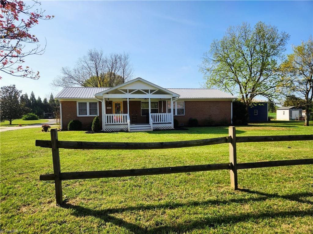 Wonderful brick ranch home sitting on 1.2 +/- Acres with 30' x 50', 2 bay, detached garage large enough to hold upt to 6 vehicles! Interior of the home boasts a spacious kitchen with ample storage & soft close cabinets/drawers. Kitchen opens to dining room on one side & living room on the other. Corian countertops in kitchen and bathrooms. Primary ensuite bath has large tiled shower with built in bench & shelves, rain & hand held shower heads. Double vanity with clear glass bowl sinks. Tankless water heater. Storage/craft shed. Concrete block storage building. Covered front and back porches. Huge back yard with fire pit. Mature trees. This home and property have so much to offer! *Professional photos coming soon*